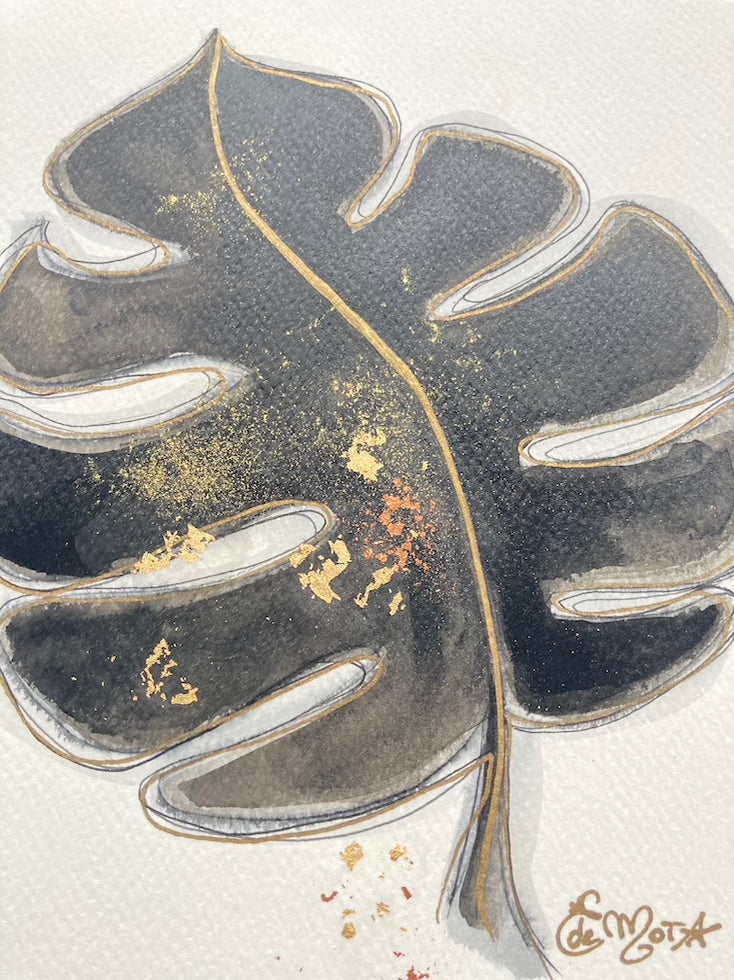 Encre et feuille d'or sur papier aquarelle