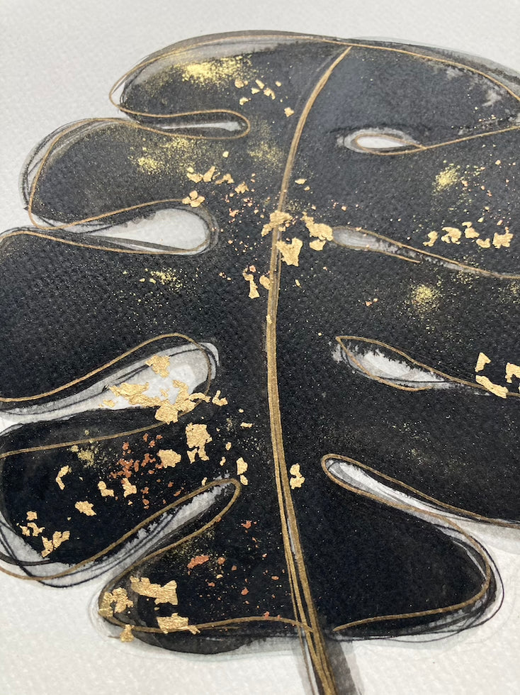 Encre et feuille d'or sur papier aquarelle